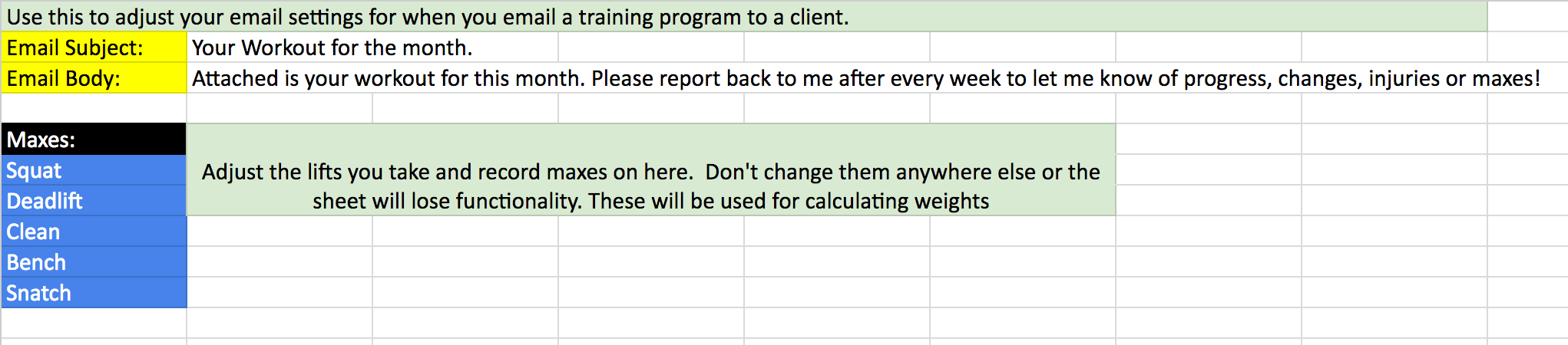 Excel Personal Training Templates